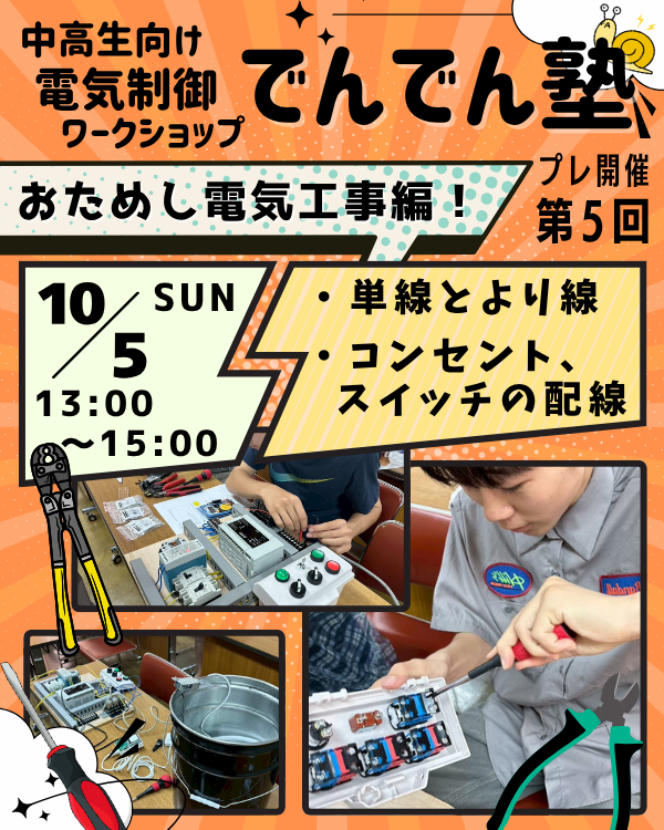 電気制御に興味がある人はもちろん、よく知らないからこそ体験してみたい人も、みんな大歓迎です(^^)